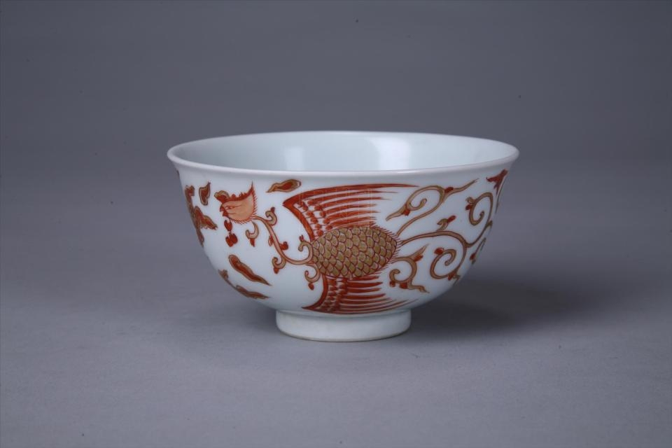 清“大清康熙年制”款矾红描金云凤纹瓷碗
