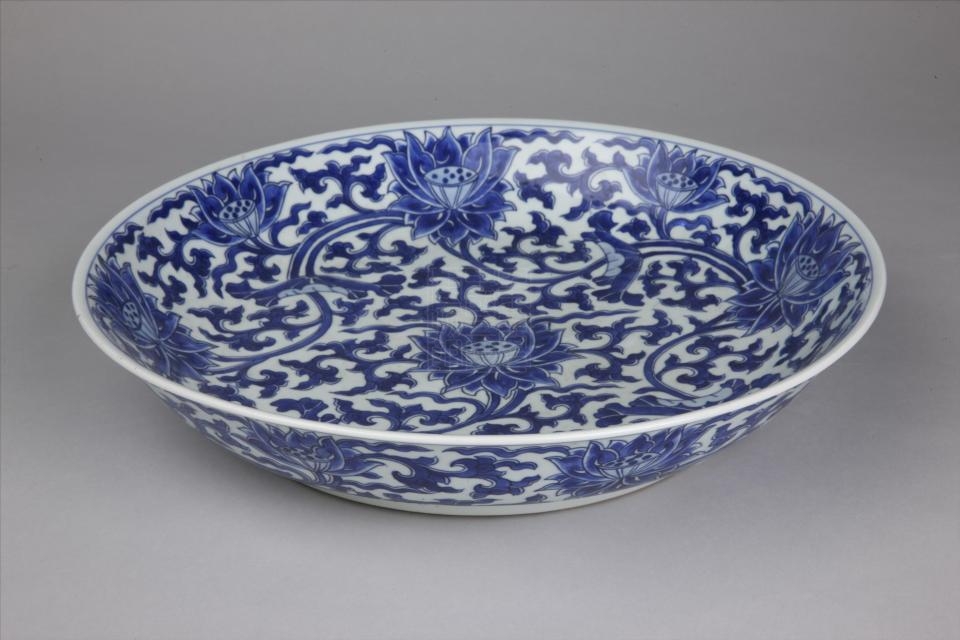 清康熙款青花缠枝莲大盘