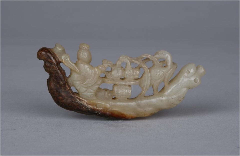 明青玉镂雕船形摆件