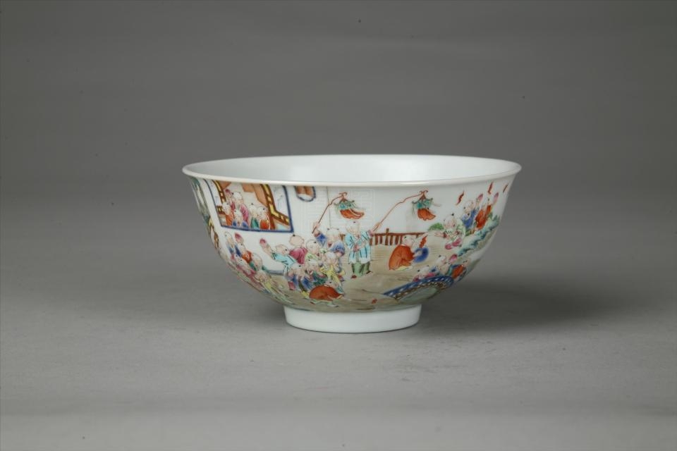 清嘉庆款粉彩百子图瓷碗