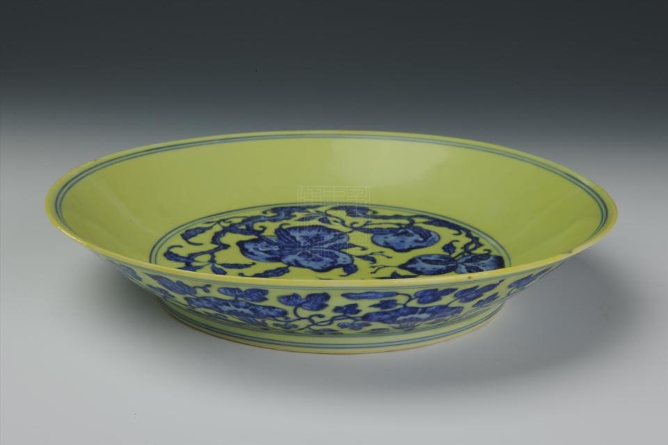 清乾隆款黄地青花九桃纹瓷盘