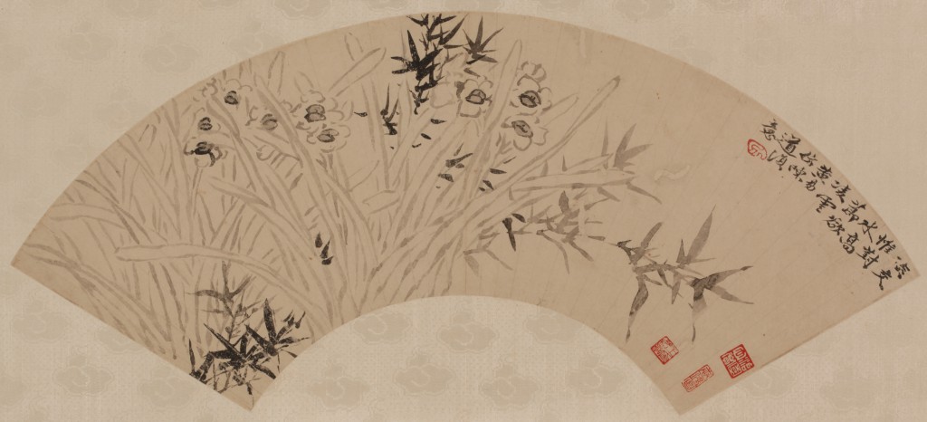 时代:清 尺寸:纸本水墨 纵15厘米,横49厘米 说明:1951年王缵绪捐献。 黄易(1744-1802年)字大易,号小松,又号秋庵。浙江仁和人。工书,山水法董巨,冷逸幽隽。兼工花卉,宗恽寿平。 此图以淡墨绘水仙衬以新篁。湿笔中锋,用笔拙逸,墨色清淡。 款识:“淡交惟对水,高节欲凌云。黄易仿陈道复意”。 钤印:朱文“易”印。