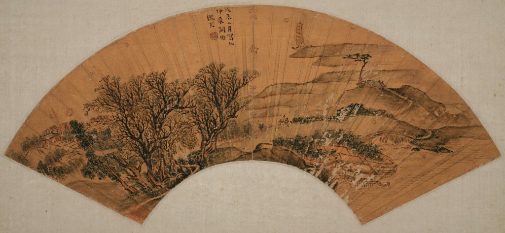 时代:明 尺寸:泥金笺设色 纵17.2厘米,横54厘米 说明:1951年申彦丞捐献。 魏克(16-17世纪)原名魏之克,字和叔,金陵人,魏之璜(1568-1647年)弟。工诗,善山水,追宗宋元。此图描绘江南田野景色。设色淡雅,笔法劲健,布局平远,意境幽深。 款识:“戊辰二月写似仲□词伯,魏克”。 钤印:“魏克”白文印。