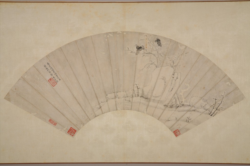 时代:明 尺寸:纸本水墨 纵16.7厘米,横50.4厘米 说明:1951年王缵绪捐献。 王崇简(1602-1678年)字敬哉,宛平人。明崇祯进士,工画。山水追宗米芾,构图命笔不落窠臼。 此图淡墨描绘冬季雪景,山石枯树上立寒鸦三只,神态各异。构图简洁,笔法恬静。意境苍凉孤寂。 款识:“暑甚,偶作寒鸦雪石呈苍老门翁一粲,弟崇简”。 钤印:“崇简”朱文印。