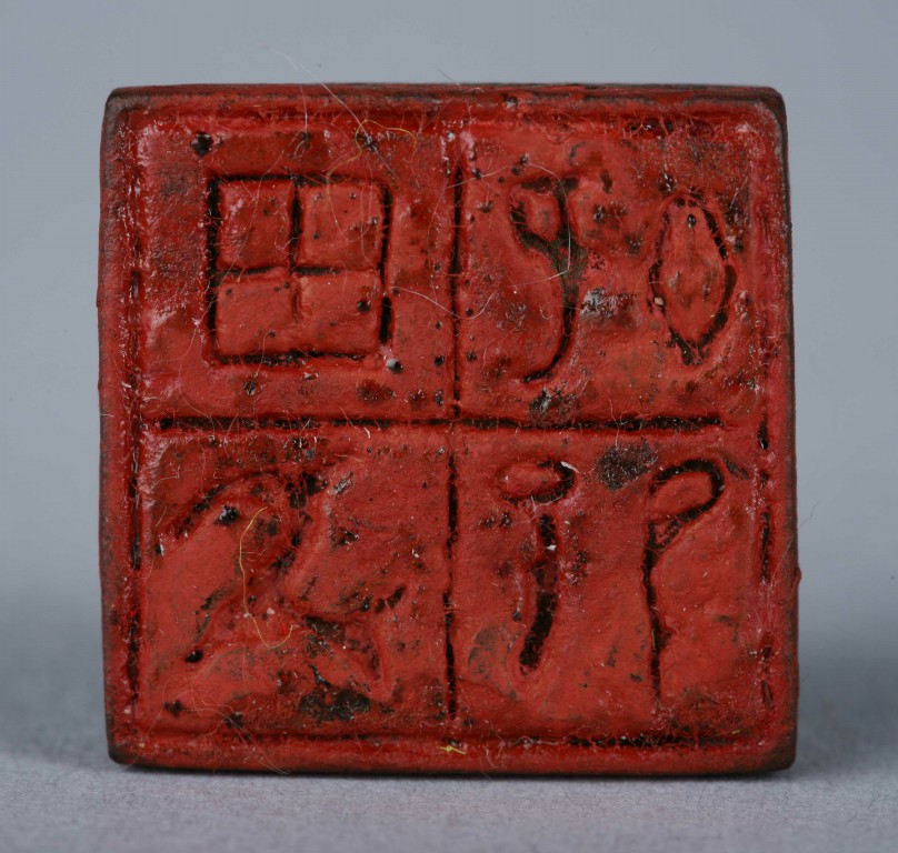时代:战国 尺寸:长2.4,宽2.4厘米 说明:1954年四川昭化宝轮院巴蜀船棺葬出土。方印台,瓦钮,白文,加田字界格。印文为巴蜀图语,是巴蜀古族用来记录语言的工具、族徽、图腾或宗教符号,是一种象形文字,是巴蜀文字的雏形。